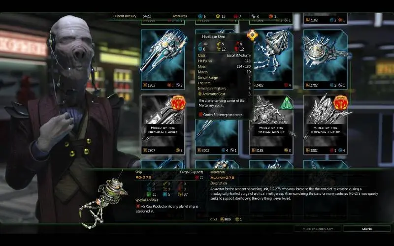 Galactic Civilizations III – Mercenaries Expansion Pack è un contenuto scaricabile per Galactic Civilizations III, la prima espansione del gioco che apre nuove opportunità in tutta la galassia. La razza umana sta combattendo una lotta disperata contro l’Impero Drengin; entrambe le parti cercano nuove opportunità per ribaltare le sorti del gioco corteggiando il mondo sotterraneo galattico e ingaggiando mercenari d’élite. Quando si scopre uno di questi stabilimenti, si può consultare una lunga lista di mercenari, ognuno dei quali ha una nave unica e fornisce vari servizi.
