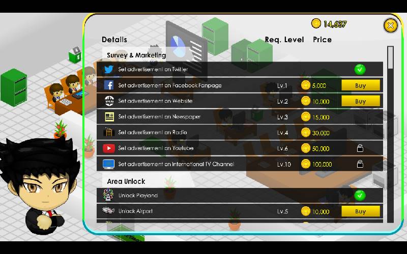 Stabilisci una crescente rete di negozi di alimentari in questa emozionante esperienza da magnate, dove bilanci le esigenze dei clienti, confronti le imprese rivali e alleni il tuo team per implementare tattiche promozionali efficaci per il successo.