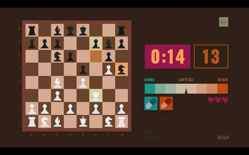 Chess Pills è un gioco di enigmi scacchistici frenetico dove devi individuare il pezzo giusto e scegliere la mossa corretta in pochi secondi. Usa pillole speciali per alterare la percezione: l’arancione affina l’istinto, la turchese rallenta il tempo. Con oltre 3.000 enigmi sempre in ordine casuale, ogni partita è diversa. Sfida te stesso e supera il tuo record.