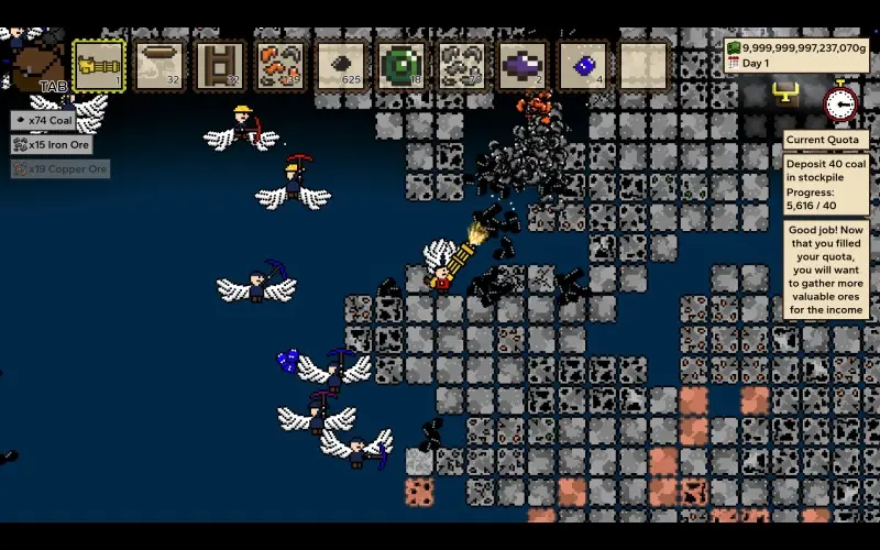 Un piccone malandato avvia la tua scalata dentro una compagnia mineraria avida, dove le quote decidono il tuo destino. Amplia l’operazione assumendo personale e migliorando i macchinari. Stufo delle quote? La modalità rilassata permette di minare senza pressioni.