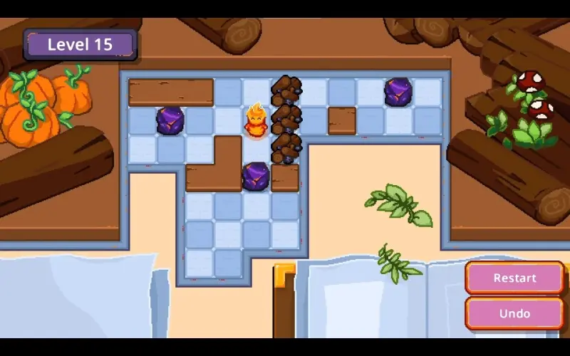 Un piccolo spirito di fuoco si muove casella per casella all’interno di un accogliente camino in pixel art. La sua missione è spingere pezzi di carbone per riaccendere i falò dormienti. Spegni tutti i fuochi per portare calore e fascino in ogni angolo del focolare.