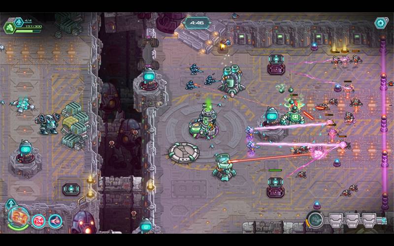 • Quaranta diversi potenziamenti per migliorare la tua strategia e potenziare le tue unità, armandole con droni difensivi, esplosioni rimbalzanti, razzi al napalm e molti altri.