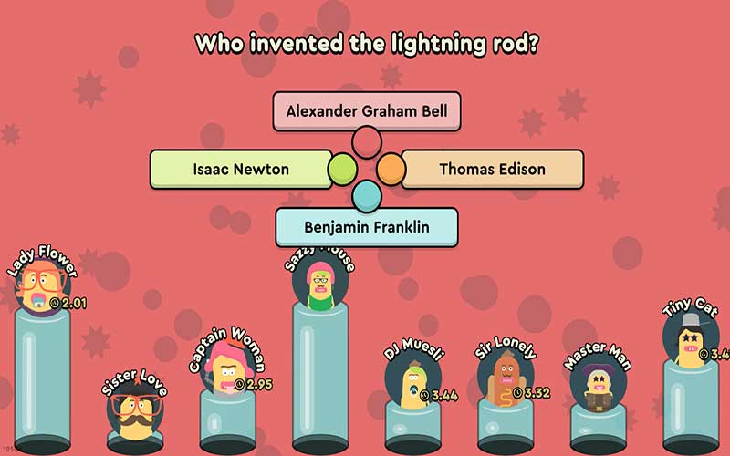 Papas Quiz è un gioco di party/trivia sviluppato da old apes’ studios in papas quiz, puoi invitare fino a 8 amici a giocare con te, per giocare hanno solo bisogno di un telefono o un computer che possa connettersi a internet in modo da poterlo usare come controller. Il gioco è diviso in turni, ogni turno i giocatori scelgono una categoria di gioco. Più velocemente i giocatori rispondono più punti vengono premiati, il giocatore che riesce ad accumulare più punti dopo l’ultimo round vince.