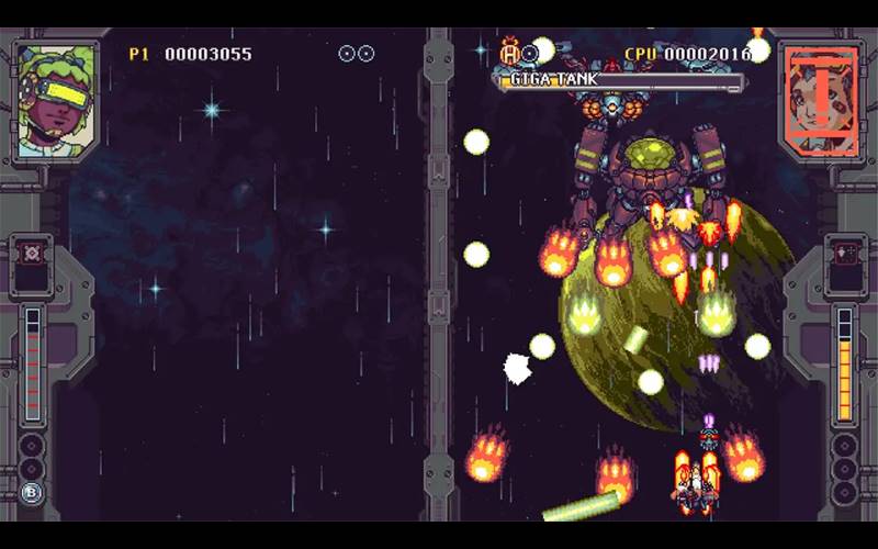 Preparati per un’azione senza sosta in Rival Megagun, un gioco competitivo di sparatutto verticale in schermo diviso dove i giocatori si trasformano in Mega Navi da Guerra per combattere battaglie intense contro amici o nemici.