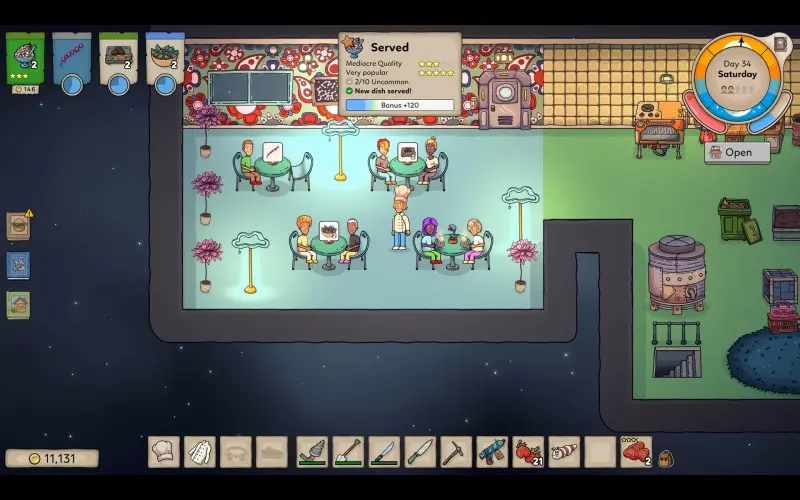 Space Chef, un simulatore di cucina a tema spaziale con leggeri elementi RPG di sopravvivenza sviluppato da Blue Goo Games. Caccia, cucina e servi piatti cosmici utilizzando ingredienti provenienti da tutta la galassia per diventare il più grande chef della Nebulosa. Sta a te cercare gli ingredienti migliori dai pianeti alieni, cucinare piatti deliziosi e servirli ai clienti nel comfort del tuo ristorante completamente personalizzabile.