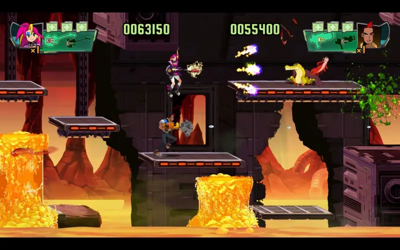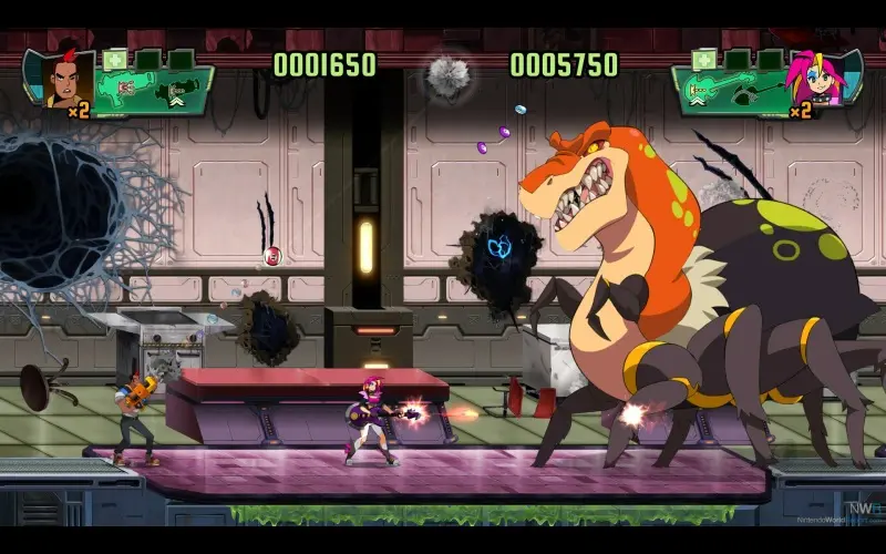Spidersaurs ti catapulta in un’avventura run-and-gun caotica dove ibridi mutanti di dinosauro e ragno sono fuggiti! Vesti i panni della punk Victoria o della recluta Adrian e affronta sei intensi livelli, dai vulcani in eruzione ai laboratori infestati. Raccogli potenziamenti, padroneggia armi uniche e rimanda queste creature mostruose all’estinzione in solitaria o in co-op per due giocatori.