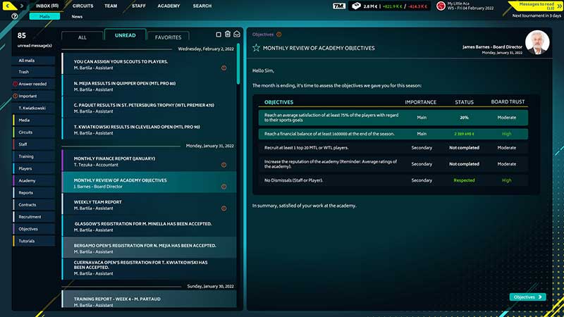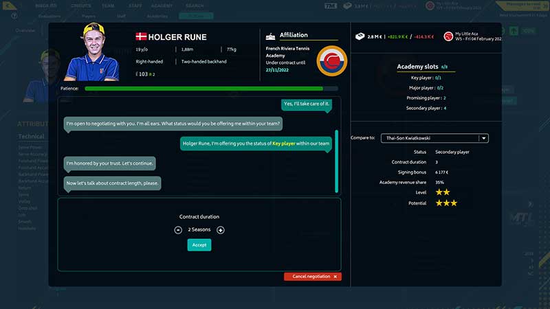 Diventate un allenatore di tennis o il direttore di un’accademia di tennis in Tennis Manager 2022. Allenate la vostra futura stella del tennis con nuove e realistiche caratteristiche.