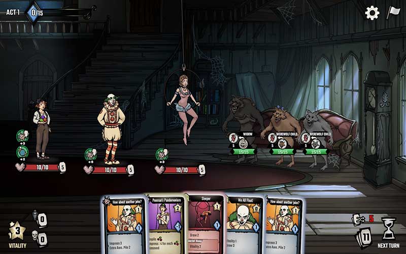 The Amazing American Circus è un deck builder e un gioco di gestione tycoon sulla costruzione del più grande spettacolo di circo itinerante nel mondo e sopravvivere nell’industria spietata del circo americano durante la sua età d’oro alla fine del 1800. Sarai in grado di andare punta a punta con giganti come Ringling Bros, P.T. Barnum e Buffalo Bill? Costruisci la tua troupe, gestisci le finanze del circo, esplora l’America, viaggia di stato in stato, di città in città, e vivi la storia del declino del selvaggio west e l’inizio dell’età dorata della storia americana, il periodo in cui la disuguaglianza sociale è diffusa, e quando famose figure storiche e mitologiche diventano leggende del folklore americano.