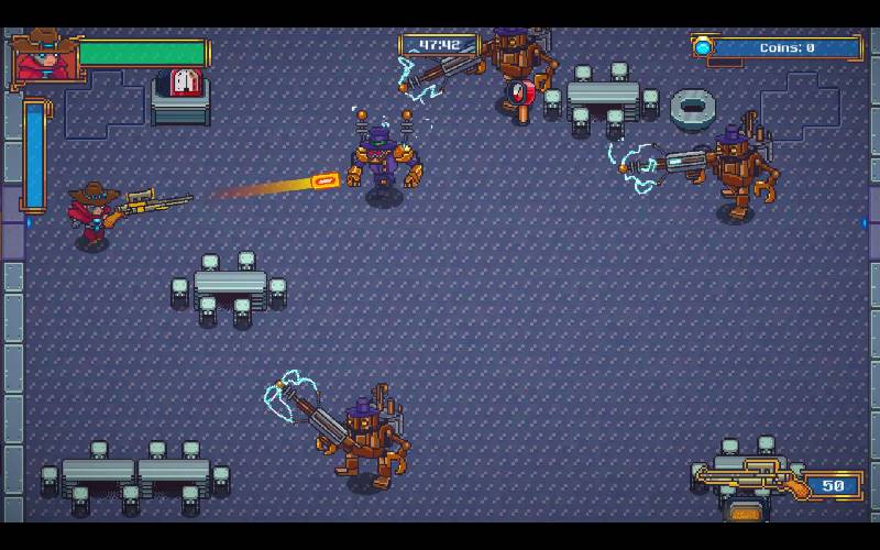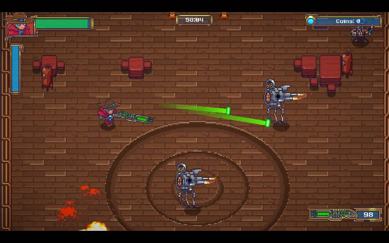 Spara contro le bande cibernetiche in The Legend of Cyber Cowboy! Nei panni di un pistolero steampunk con un braccio meccanico, utilizzerai armi potenziate per combattere bande cibernetiche che terrorizzano una città. Ora sta a te fermare queste bande e riportare la pace nel Wild West!