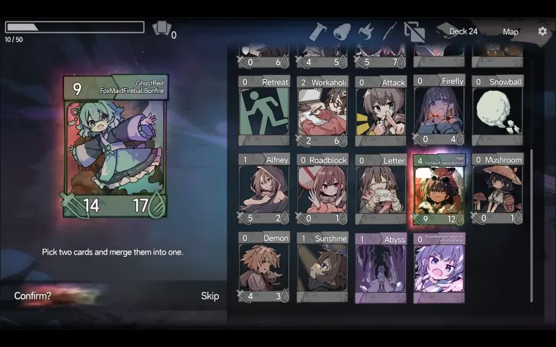 • Combina due carte qualsiasi per creare potenti combinazioni di singole carte che trasformano le capacità del tuo mazzo.