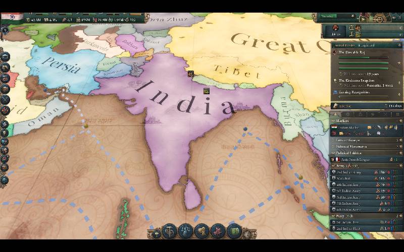 Vivi un secolo di incertezze coloniali e rivoluzioni politiche in Pivot of Empire, un pacchetto di immersione DLC per Victoria 3, sviluppato da Paradox Interactive. Questo contenuto si concentra sull’evoluzione sociale dell’India, da un governo gestito da imprese private ai primi passi di un movimento indipendentista. Guiderai le diverse culture del subcontinente indiano verso prosperità e libertà, o manterrai lo status quo come pilastro centrale dell’impero più potente al mondo? I venti del cambiamento soffiano intorno alla Corona.