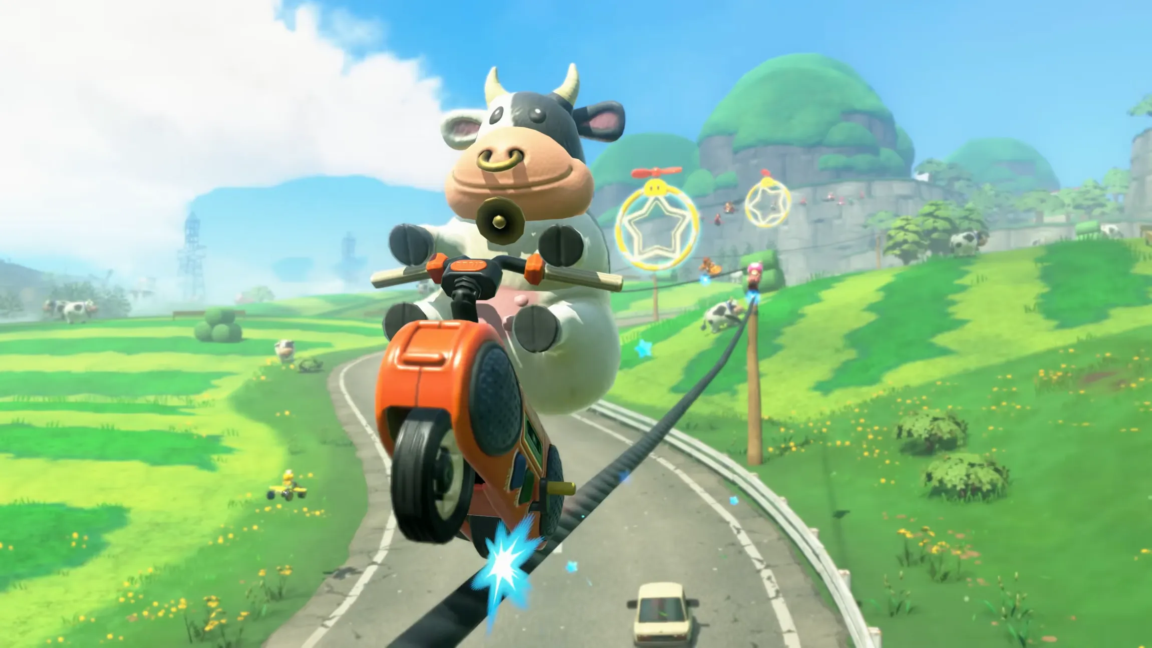 Meglio ancora: il circuito “Koopa Troopa Beach” avrà d’ora in poi diritto a due giri prima di essere completato invece di uno solo. A margine di questo, il titolo manifesta anche una volontà di dinamizzarsi un po’ ovunque. Ad esempio, i sacchi di cibo riappariranno più rapidamente, così come le monete piazzate sull’acqua. E passare sulla schiena della Manta si tradurrà ora in un boost di velocità.